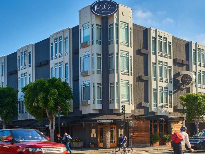 Hotel Zoe Fisherman’s Wharf is a stylish urban retreat nestled just steps from San Francisco’s iconic waterfront. With thoughtful design and keen attention to local character, the hotel seamlessly balances sleek modernity with warm, inviting touches. Guests enjoy individually furnished rooms and suites, each outfitted with premium bedding, a laptop-safe workspace, free in-room Wi-Fi, designer toiletries, and access to amenities such as a cozy courtyard with fire pits, a library, in-room spa services, and on-site dining at the Italian-inspired Pescatore Trattoria. Valet parking (with EV charging) and concierge services add practical ease to the experience.