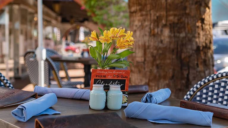 Experience Palm Springs at its best on the beautiful, dog-friendly outdoor dining space at Clandestino.