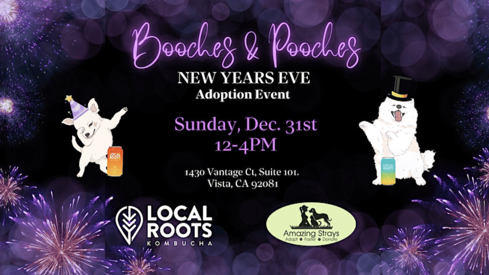 Spend the daylight hours of New Year's Eve with Amazing Strays Rescue at Local Roots Pizza & Tap! From 12 PM to 4 PM, indulge in a delightful afternoon filled with craft brews, wood-fired pizzas, and the chance to meet adorable adoptable pups. With 40 rotating tap handles, enjoy hard kombuchas, local craft beer, and a selection of wines by the glass. Delight your taste buds with Artisan crafted Wood Fire Brooklyn-style pizzas straight from the kitchen. For every pint you savor, $1 will go to support the heartwarming efforts of Amazing Strays Rescue. Make the last day of the year memorable and meaningful!